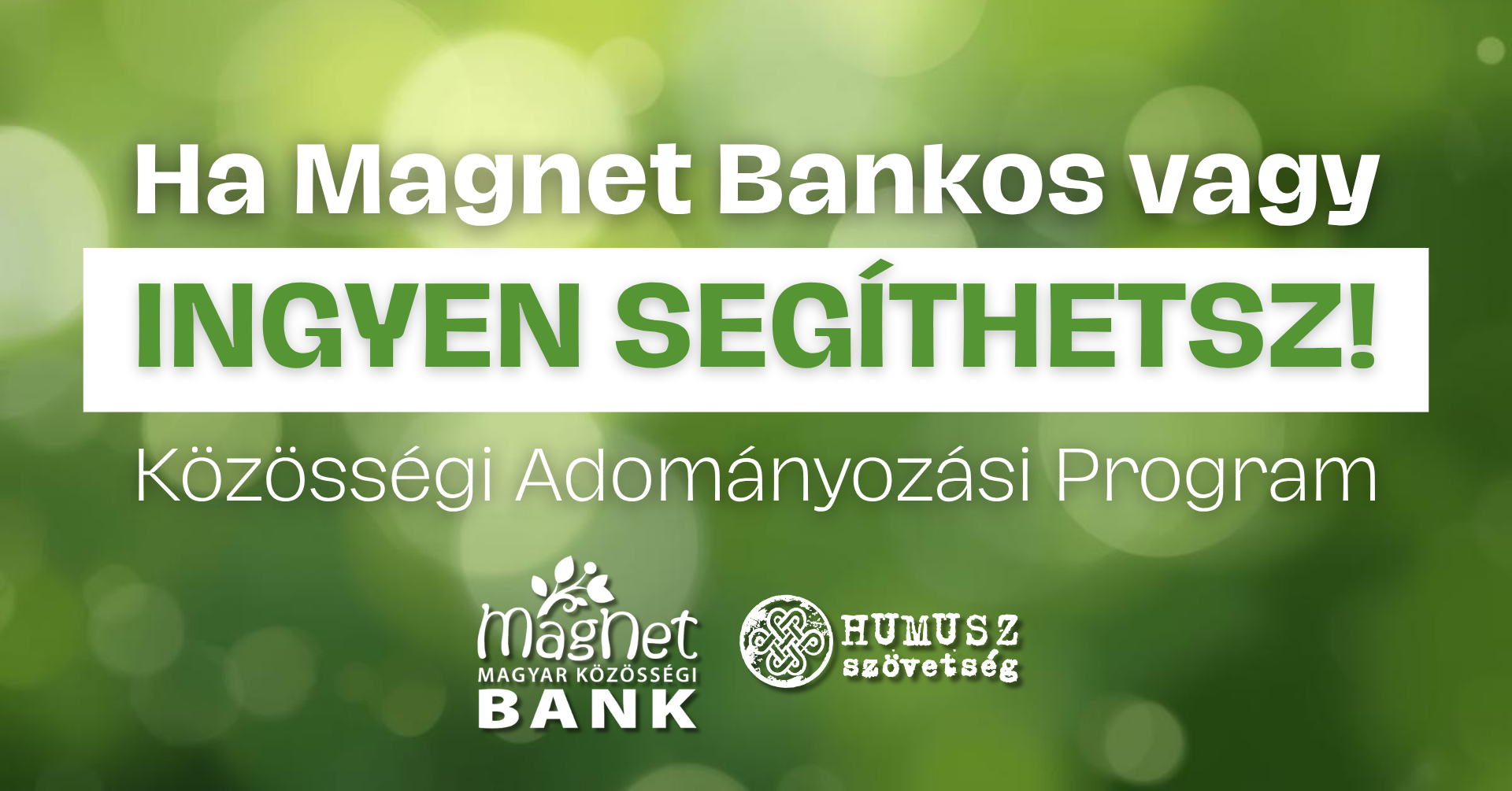 Korábbi hírlevelünkben is beszámoltunk róla, hogy nagy örömünkre mi is bekerültünk a MagNet Bank Közösségi Adományozási Programjának (KAP) támogatható szervezetei közé. Ez azt jelenti, hogy ha MagNetes ügyfél vagy, most te döntheted el, hová kerüljön a bank nyereségének egy része – akár hozzánk, a Humusz Szövetséghez is!